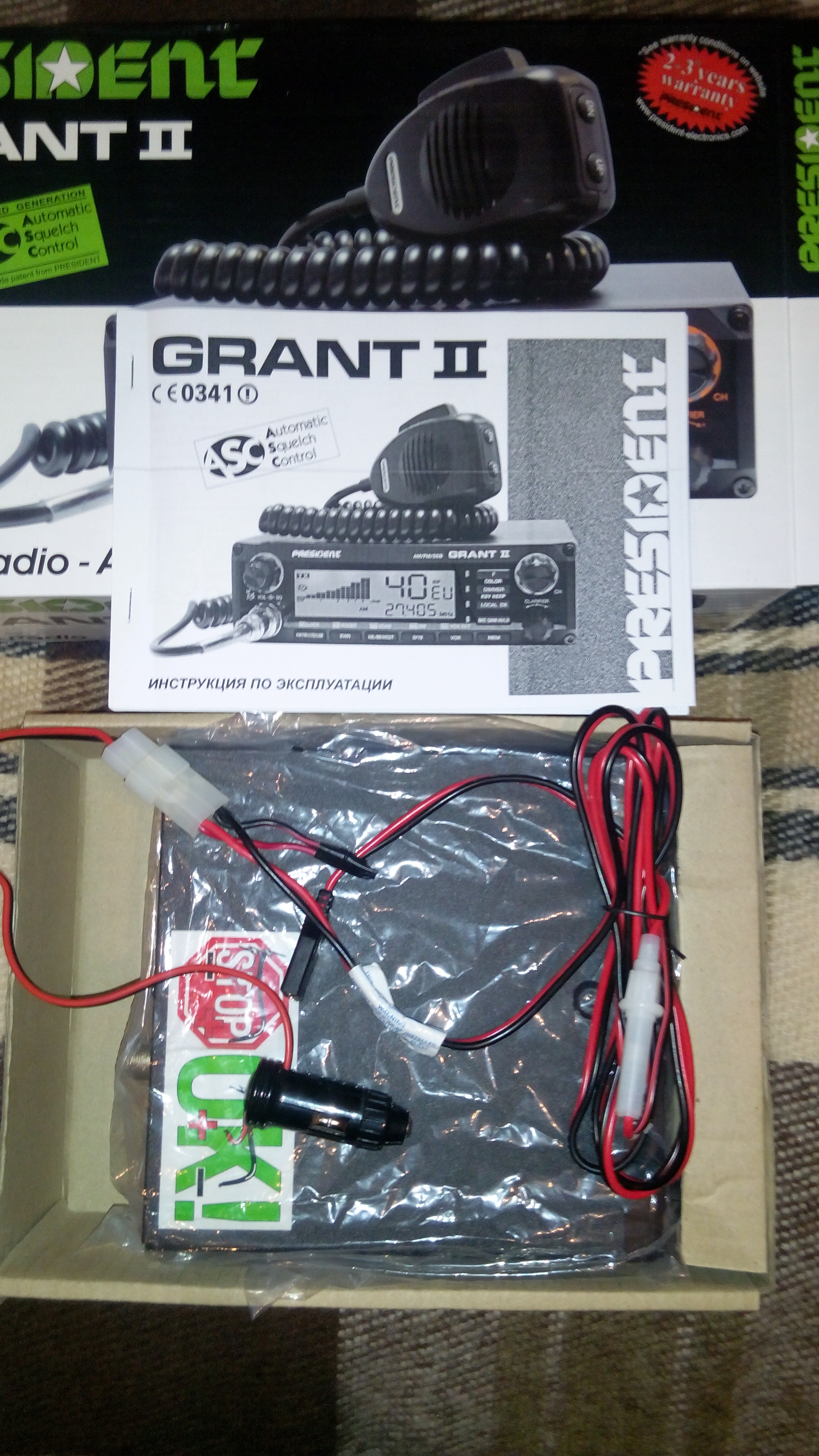 Питание радиостанции и усилителя от прикуривателя.