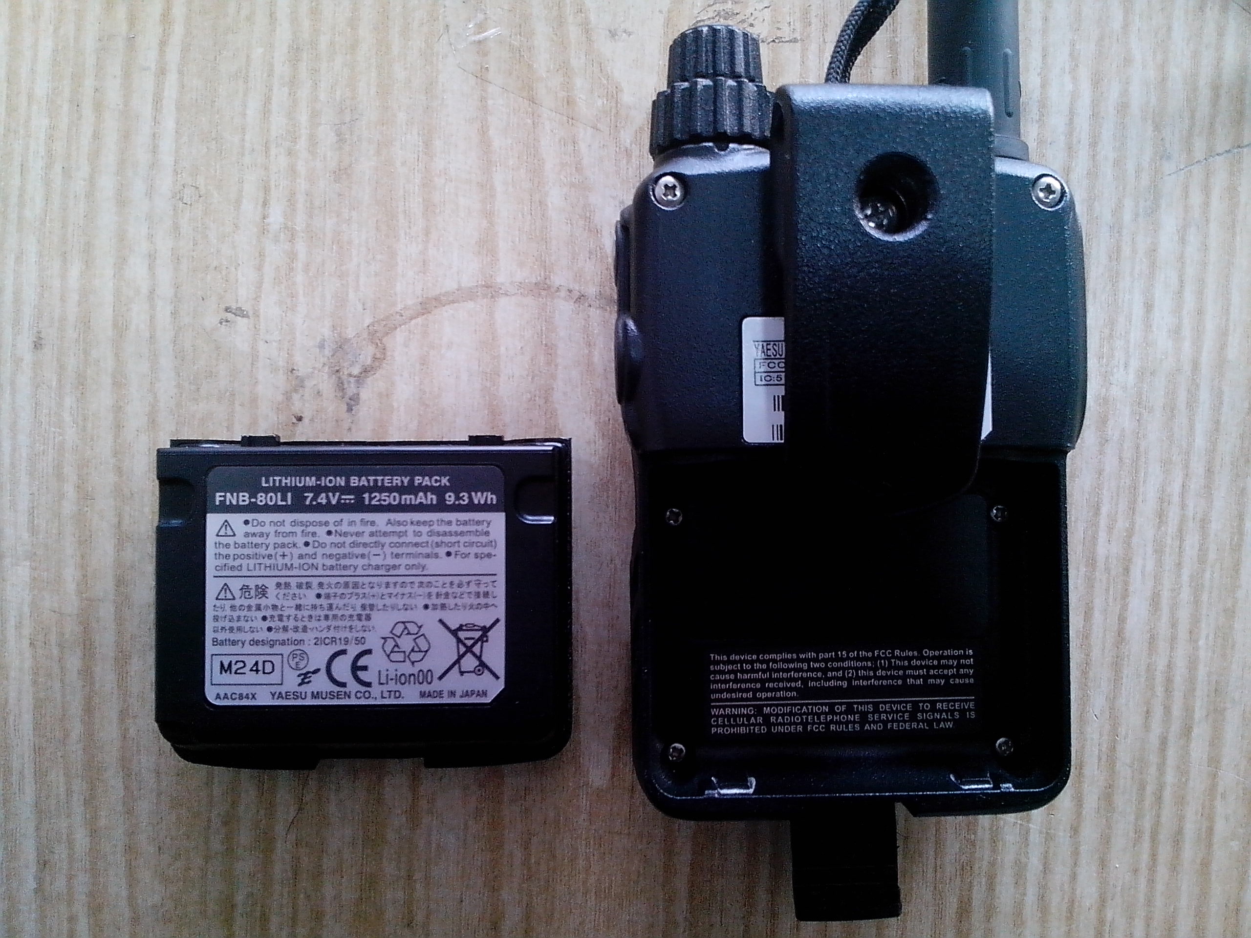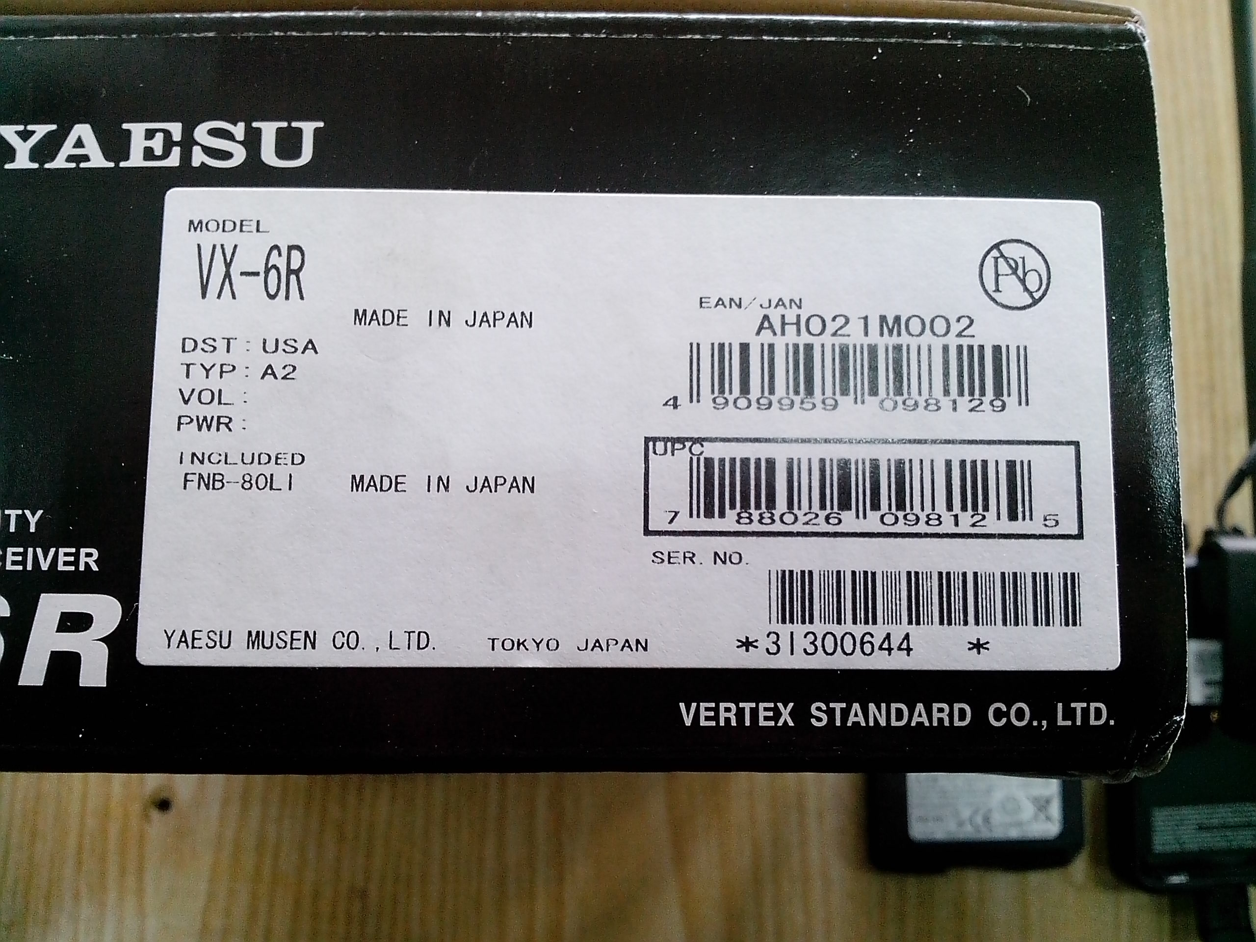 VX-6R поставляется в комплекте с Li-Ion батареей FNB-80LI повышенной емкости (7.4 В, 1250 мА/ч). Время заряда от опционально поставляемого комплекта быстрого зарядника (подставка CD-15A и адаптер NC-72) составляет 2.5 часа. Возможно питание станции от внешнего источника 12 В.