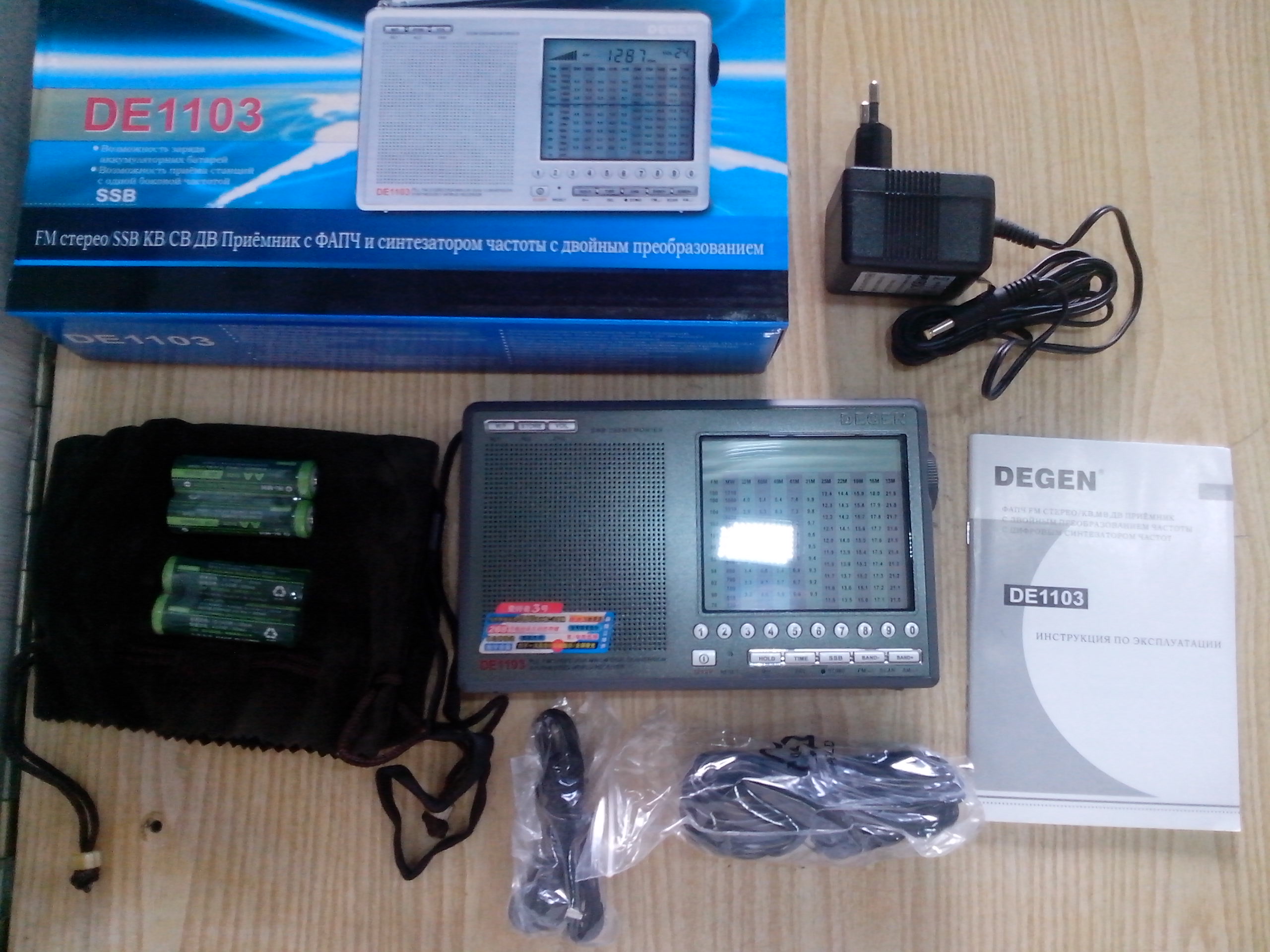 Одним из главных и очень важным является возможность приема SSB (однополосных сигналов) — хороший аргумент для любителей радиоприема. Регулировка громкости — электронная. Зарядка аккумуляторов (в комплекте) внутри приемника — удобно. Подробное описание и технические характеристики приемника DEGEN 1103 можно прочесть на сайте http://radiovnimanie.ru. Кроме широкой функциональности имеются еще и не документированные возможности — например вот, понятная инструкция по раскрытию диапазона выше 30 мГц и ниже 100 кГц.