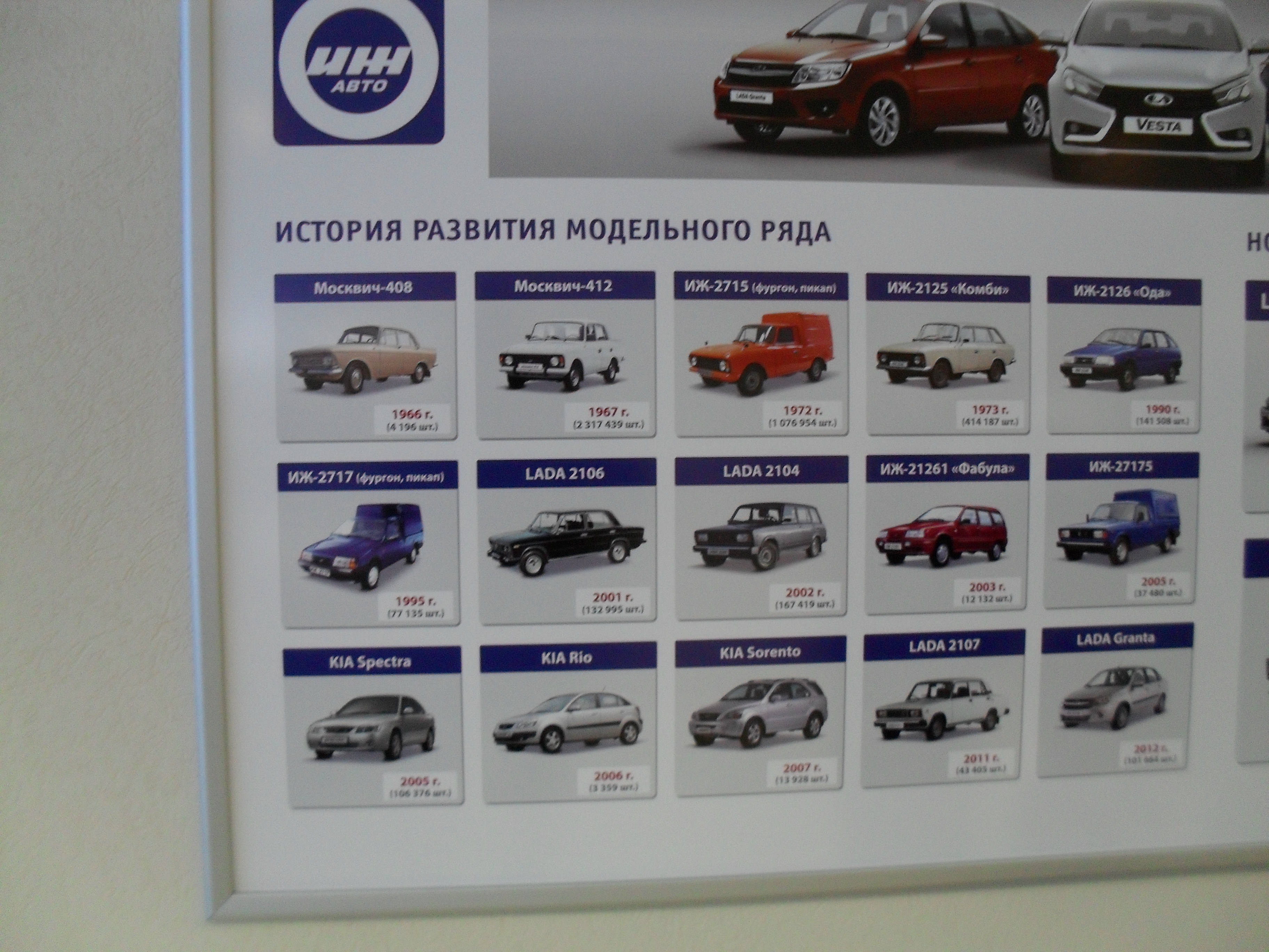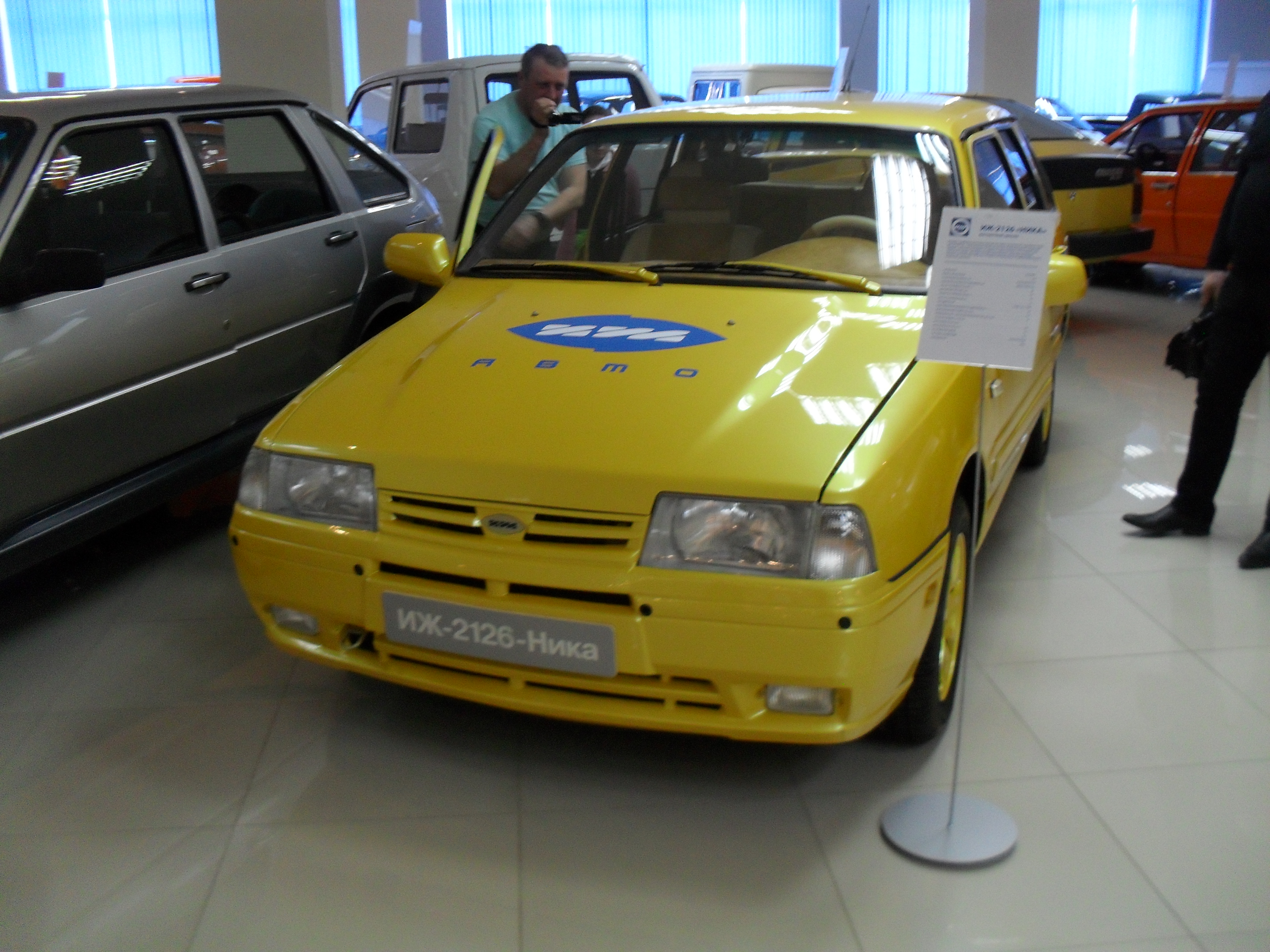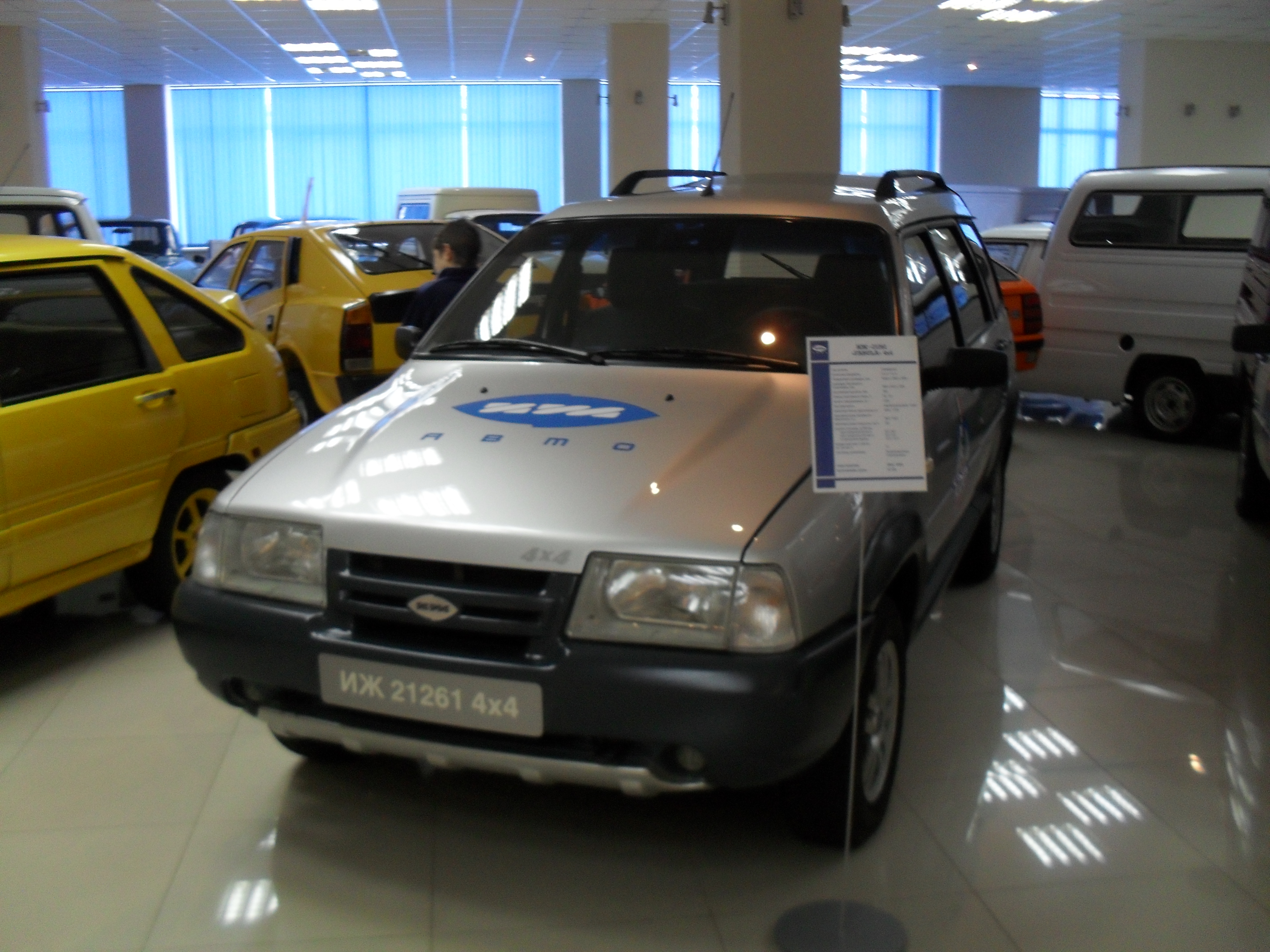 Сходили сегодня на сборочное производство+музей Ижевского автозавода (ныне ООО "Объединенная автомобильная группа". Учредители: АвтоВАЗ, группа Ниссан-Рено. Цена билета (экскурсию вела директор музея). Блин, в рублях сейчас непонятно. Короче, школьник-пачка "Бонда", взрослый-чуть дороже пачки "Винстон".На сборке УЖАСАЮЩАЯ чистота и порядок, все машины пока на одной нитке конвейера. В работе с 2014 года-Lada Granta Liftback, Nissan Sentra, Nissan Tiida. В сентябре полный запуск модели Lada Vesta (видел ее воочию, стоят штуков 10). Фотоаппарат заперли в кабинете директора, фото, только в музее. Пощупал ЛКП. Да, 4-5 слоев, достойненько. У нас идет роботизированная сварка-окраска кузовов, кое что еще делают, остальное-поставки с ВАЗа и Ниссан. Сборка полная. Роботы для подготовки вклеивания стекол и пр. Стенды для проверки головного света, противотуманок, торм. системы, АБС и пр. Дождевальная камера-вода со всех сторон с дикой силой, потом обдув-авто сухой. На всех стендах компы, в конце проверки-распечатка в лапы испытателю (если в конце стоит "ОК"-вперед, нет-рядом подьемники, слесаря разбираются и снова на проверку. Авто товарные на улице не стоят, сразу на автовоз и алга! Не буду выставлять фото ВАЗ-2106, 2104. Интересна история универсала на базе ИЖ-2126 "Ода". Когда ее запустили-очередь на год, упали продажи ВАЗ-2105,07,04. Тогдашние владельцы-АтоВАЗ-"кончили ее. Смотрим?