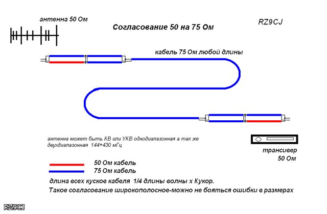 75 Омный кабель для питания 50 Омных антенн