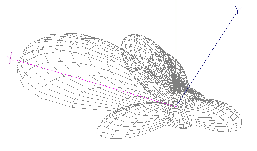 Можно видеть широкий основной лепесток (в направлении X) и приличное подавление излучения назад.