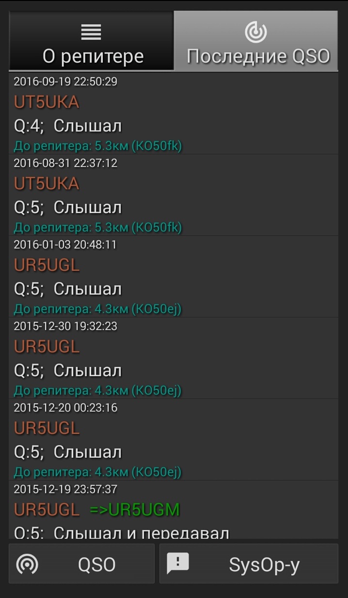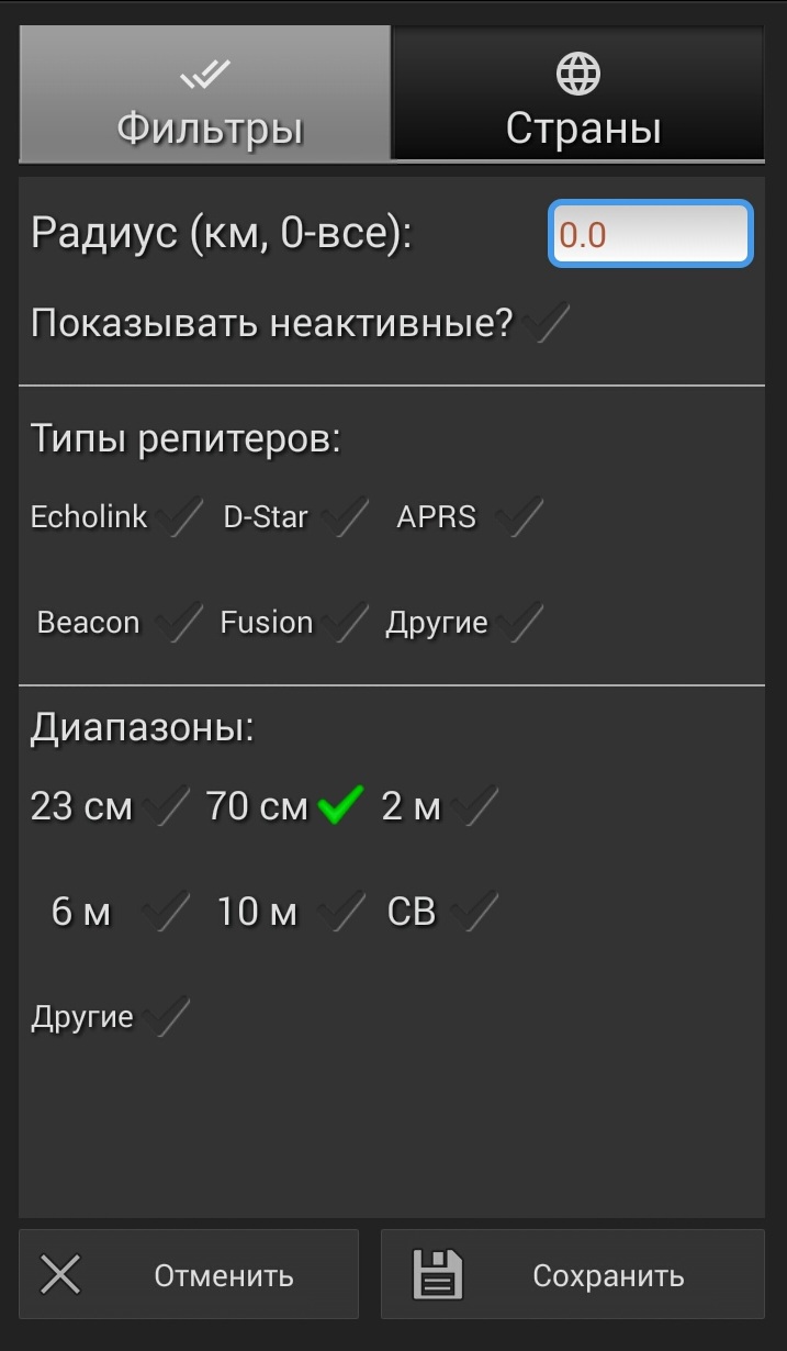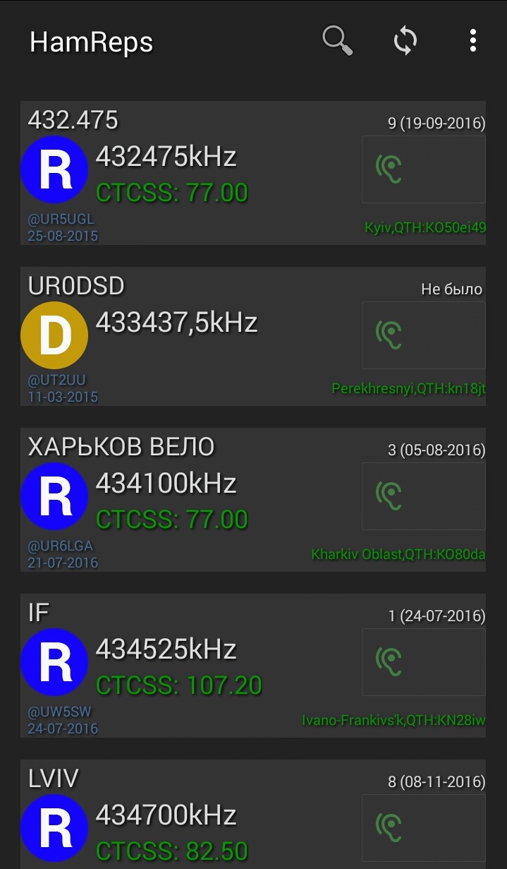 -База данных репитеров, эхолинков и прочих (оффлайн с возможностью синхронизации);