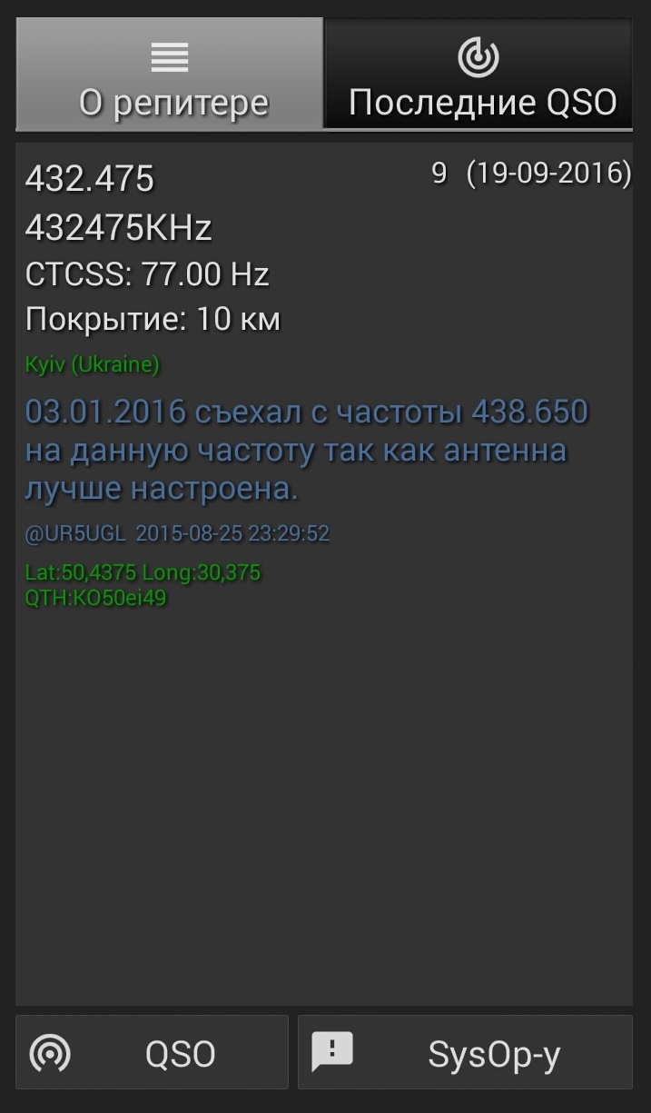 -Возможность указать на проблемы с ретранслятором или какие-либо изменения владельцу (ответственному) за репитер;
