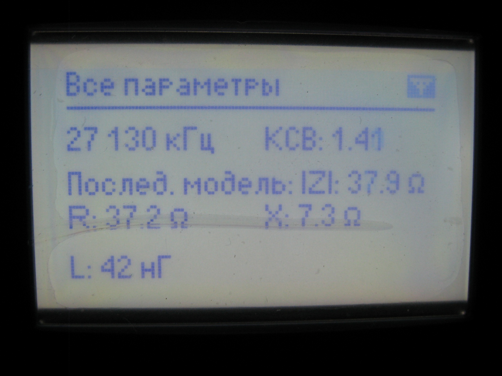 КСВ у нее 1,14 , реактивное в районе нуля , активное сопротивление в районе 50 Ом..
