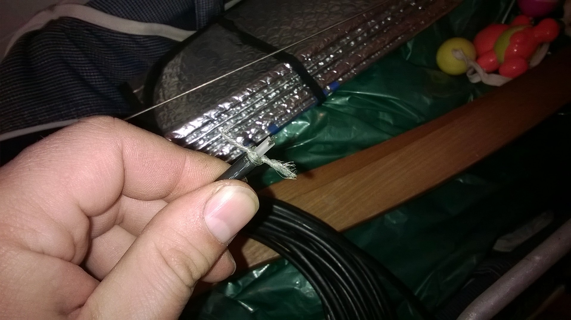 антенн перевешиваю в другую часть двора,там хоть есть возможность наклонить под каким-то углом(фоты не будет-настроения не было),и меняю кабл,ибо этот гавно(фольга).морока с разьемом:на пл маме просверлил дирочку и припаял обмотку кабеля