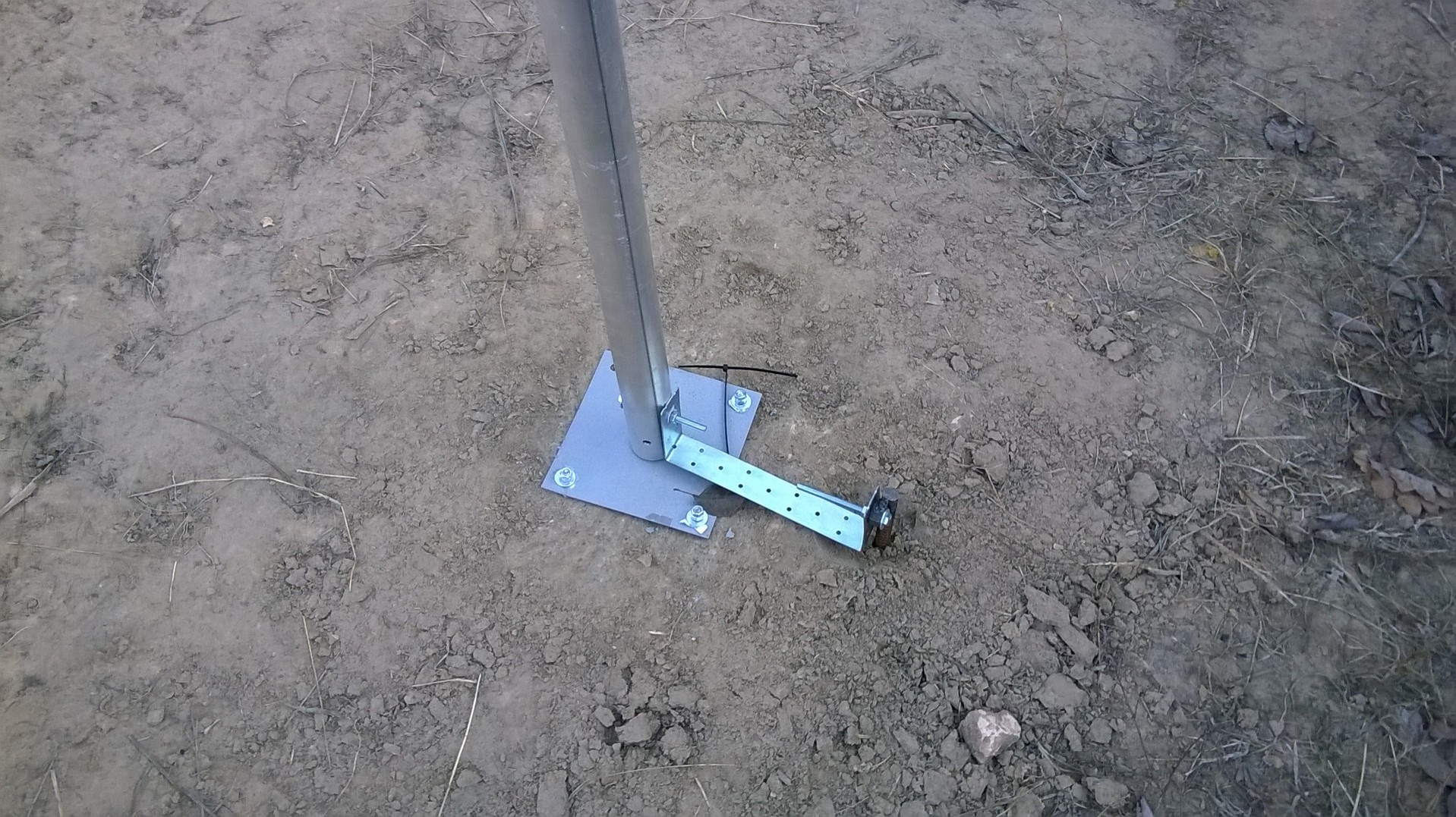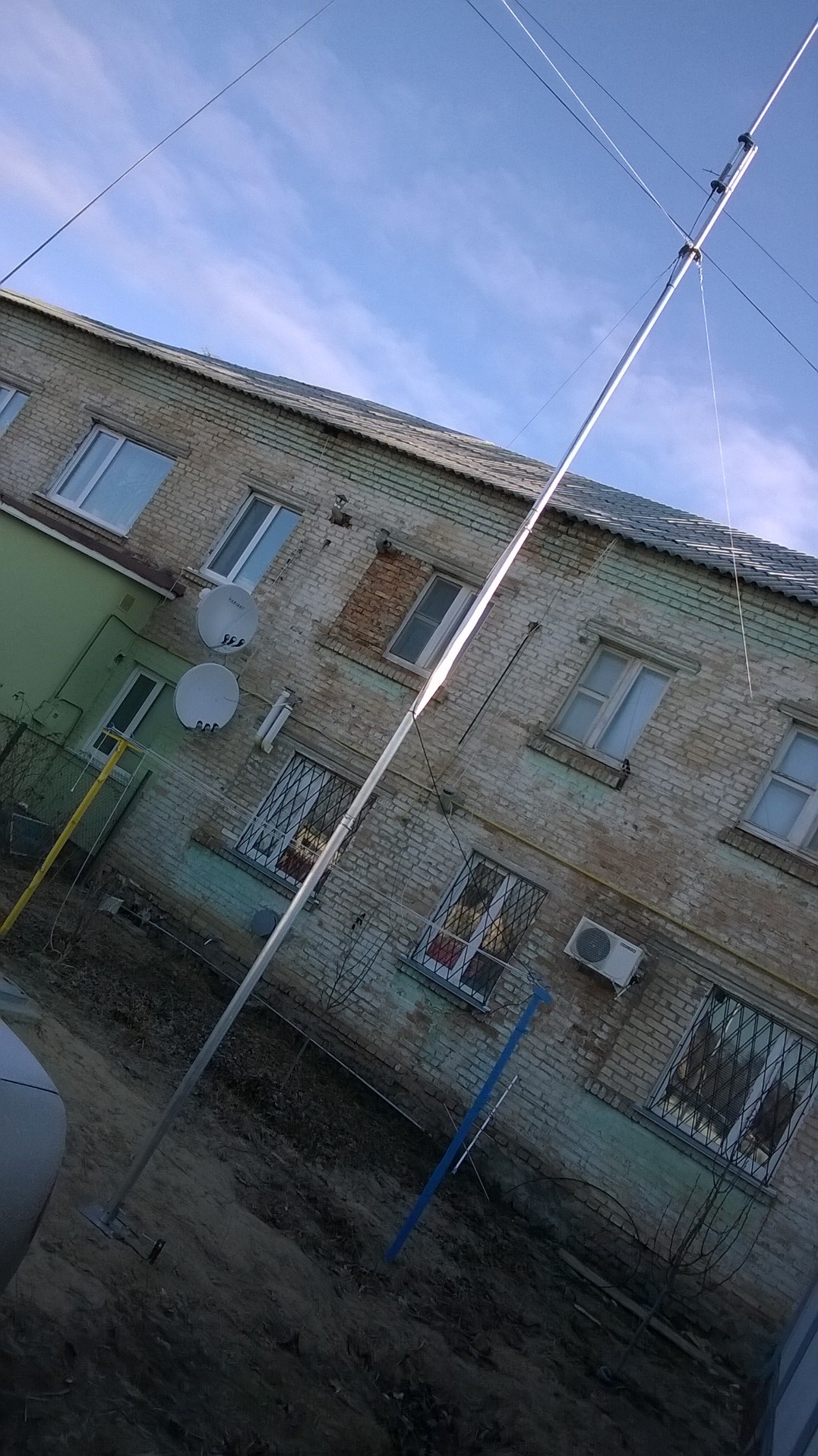 )на всё-про всё максимум 3 часа и темнеет,так что выравнивали мачту уже в потёмках+прое... ошиблись с длиной троса на одной из оттяжек+земля замерзла:забивали 2м арматуру-поснимали куртки