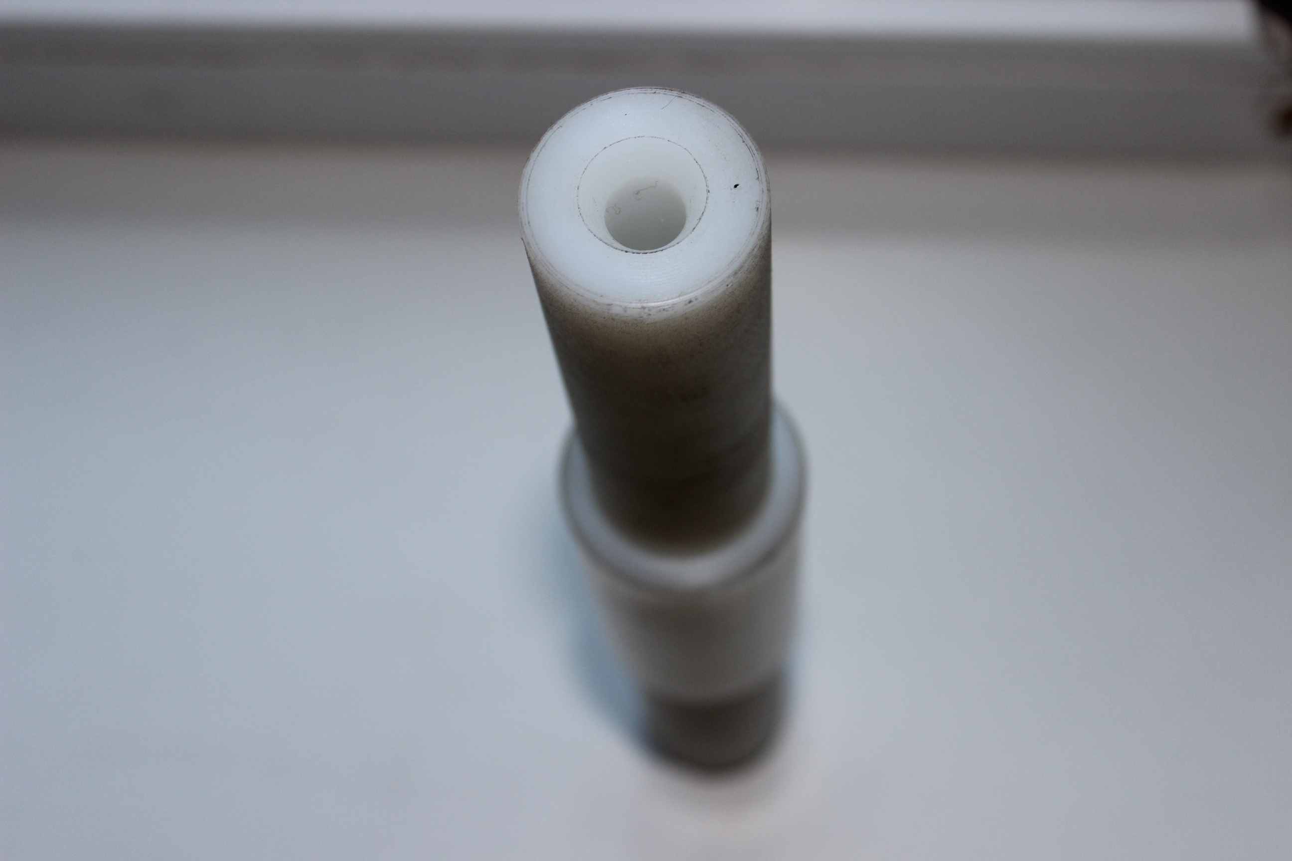 Так же из имеющейся болванки из капролона был выточен новый изолятор.