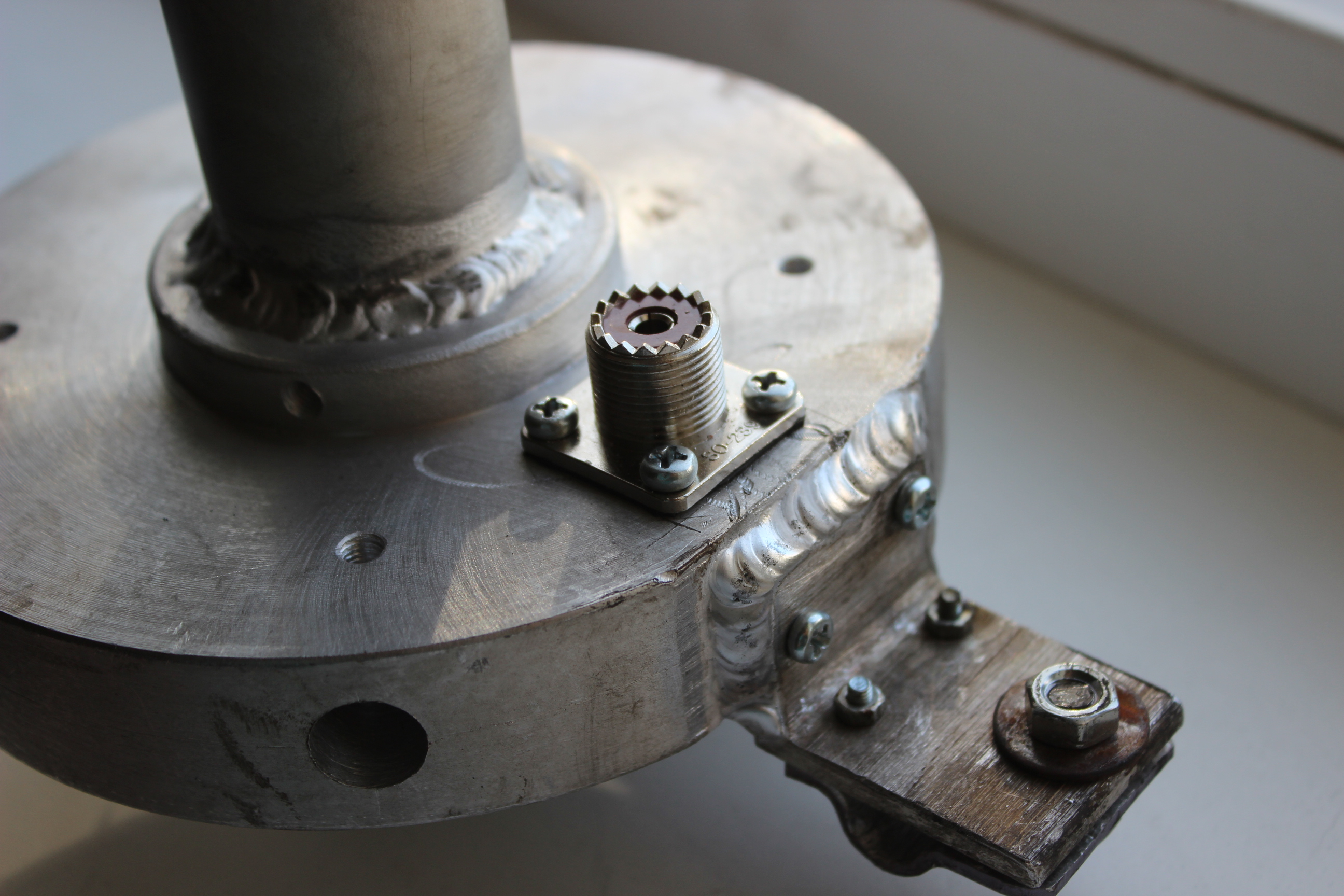 В итоге был дан заказ токарю на изготовление нижней платформы которая сочетала в себе держатель противовесов, крепление катушки и посадочное место для антенного разъема.