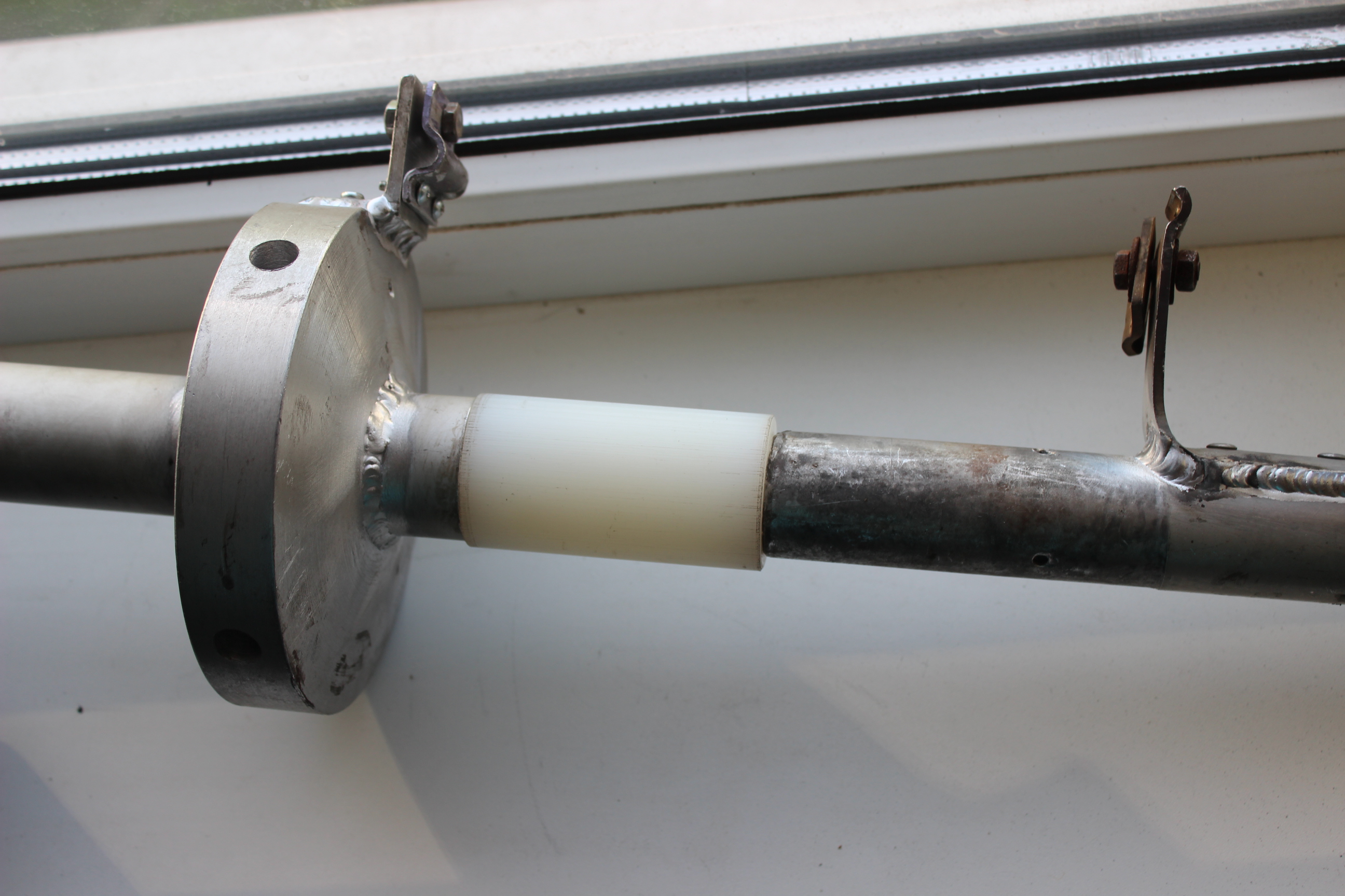 Не долго думая было принято решение переделать все указанные узлы антенны. В закромах друзей обнаружился брусок капролона и дюралевая труба диаметром 40 мм.