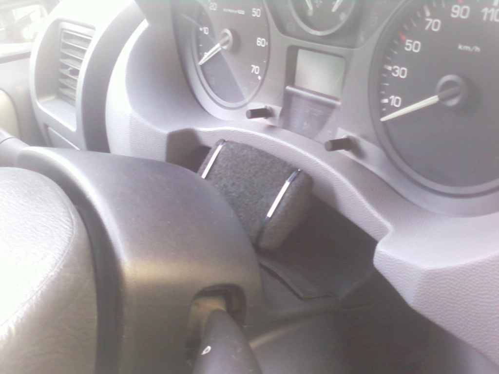 Как и у всех в центральной консоли есть типа ниша-карман. Вымерял-склеил в три слоя ДВП- вырезал все это дело-обклеил куском кожзамом-провел проводку и вывел ПОДОБИЕ внешнего динамика :D . Вот думаю внешний динамик вроде зря тянул и так все слышно. Место для внешнего пока нашел временное.