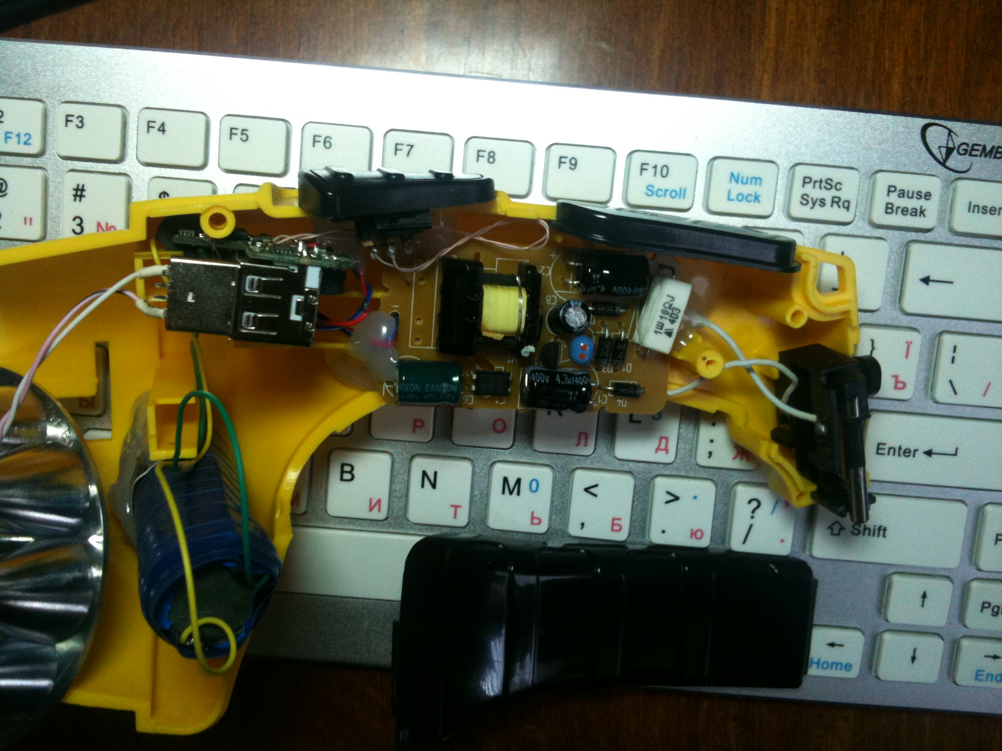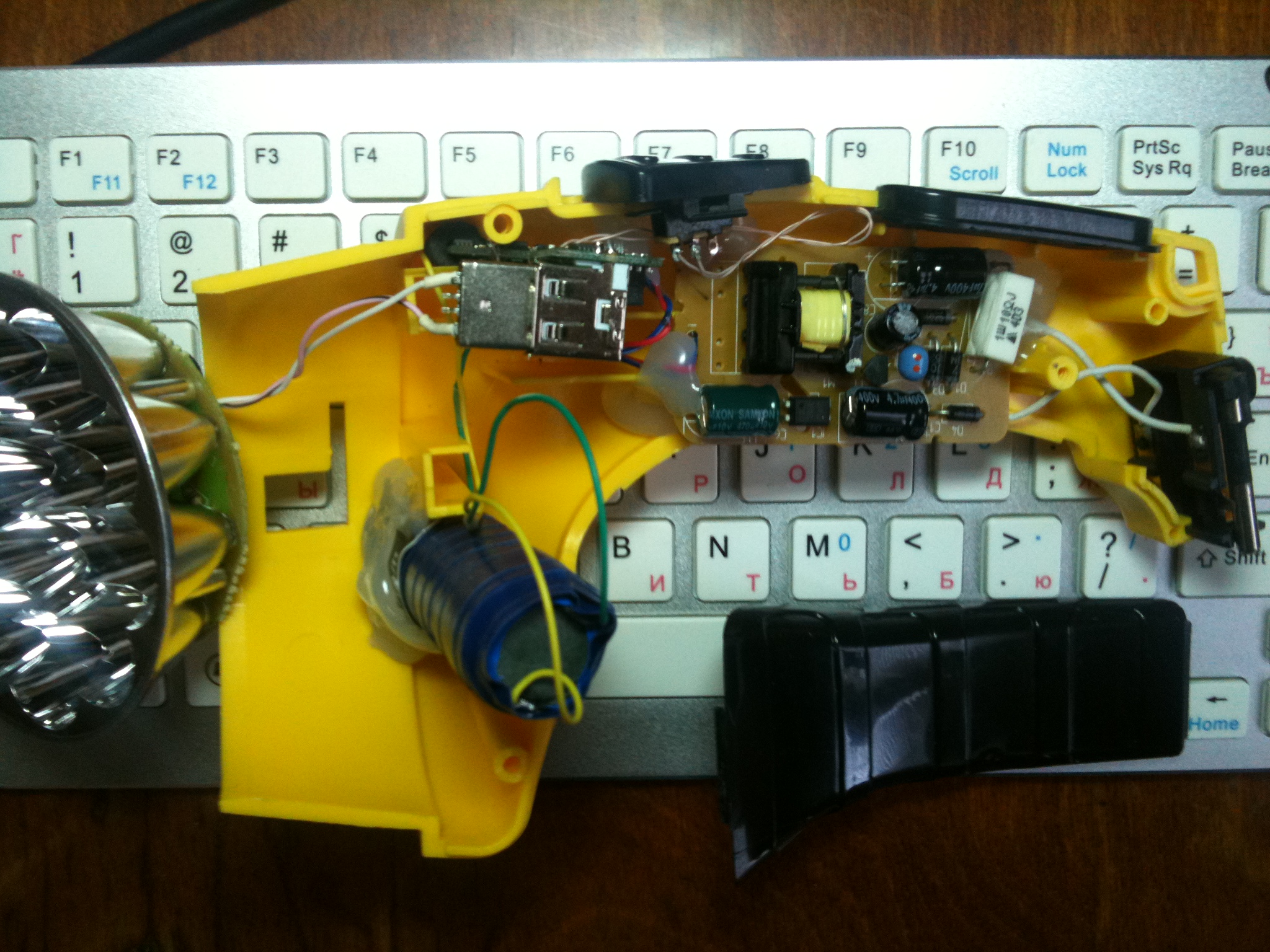 () зарядка - не убий током ближнего своего , 4 диода, два резистора и один светодиод.
