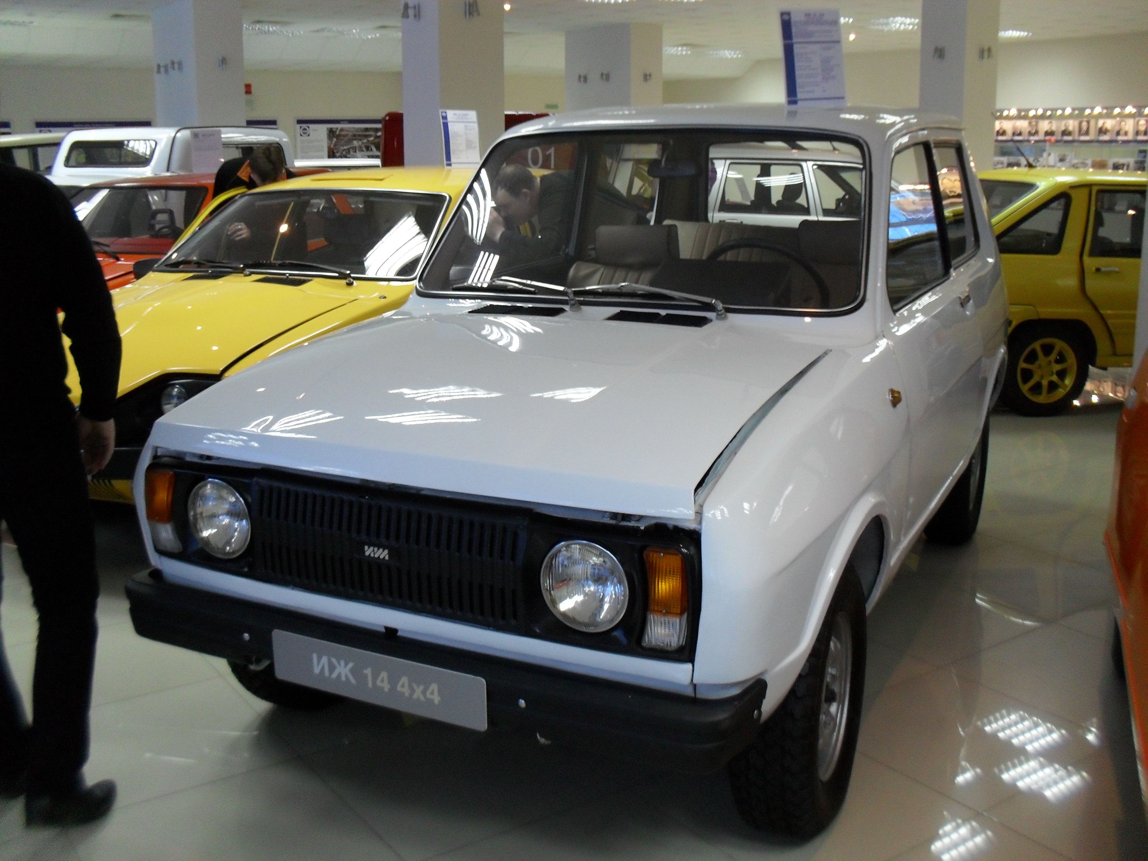 Сходили сегодня на сборочное производство+музей Ижевского автозавода (ныне ООО "Объединенная автомобильная группа". Учредители: АвтоВАЗ, группа Ниссан-Рено. Цена билета (экскурсию вела директор музея). Блин, в рублях сейчас непонятно. Короче, школьник-пачка "Бонда", взрослый-чуть дороже пачки "Винстон".На сборке УЖАСАЮЩАЯ чистота и порядок, все машины пока на одной нитке конвейера. В работе с 2014 года-Lada Granta Liftback, Nissan Sentra, Nissan Tiida. В сентябре полный запуск модели Lada Vesta (видел ее воочию, стоят штуков 10). Фотоаппарат заперли в кабинете директора, фото, только в музее. Пощупал ЛКП. Да, 4-5 слоев, достойненько. У нас идет роботизированная сварка-окраска кузовов, кое что еще делают, остальное-поставки с ВАЗа и Ниссан. Сборка полная. Роботы для подготовки вклеивания стекол и пр. Стенды для проверки головного света, противотуманок, торм. системы, АБС и пр. Дождевальная камера-вода со всех сторон с дикой силой, потом обдув-авто сухой. На всех стендах компы, в конце проверки-распечатка в лапы испытателю (если в конце стоит "ОК"-вперед, нет-рядом подьемники, слесаря разбираются и снова на проверку. Авто товарные на улице не стоят, сразу на автовоз и алга! Не буду выставлять фото ВАЗ-2106, 2104. Интересна история универсала на базе ИЖ-2126 "Ода". Когда ее запустили-очередь на год, упали продажи ВАЗ-2105,07,04. Тогдашние владельцы-АтоВАЗ-"кончили ее. Смотрим?