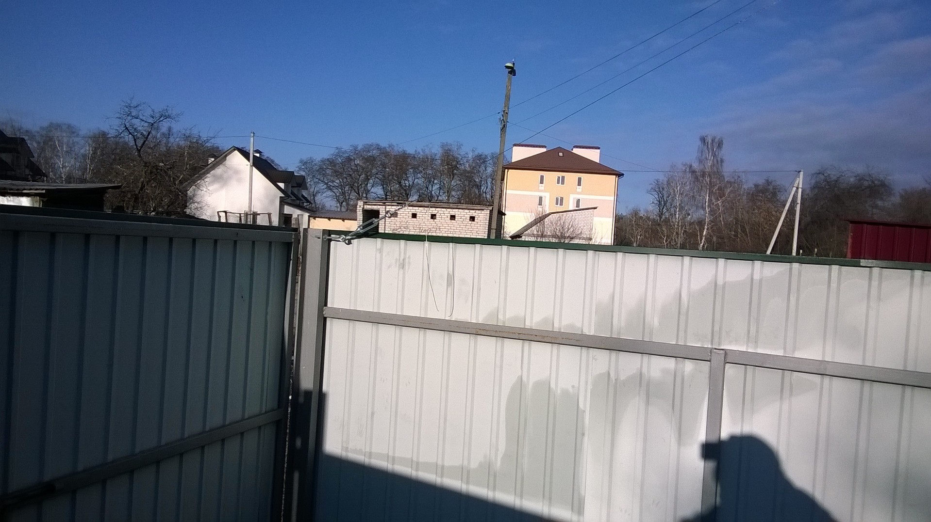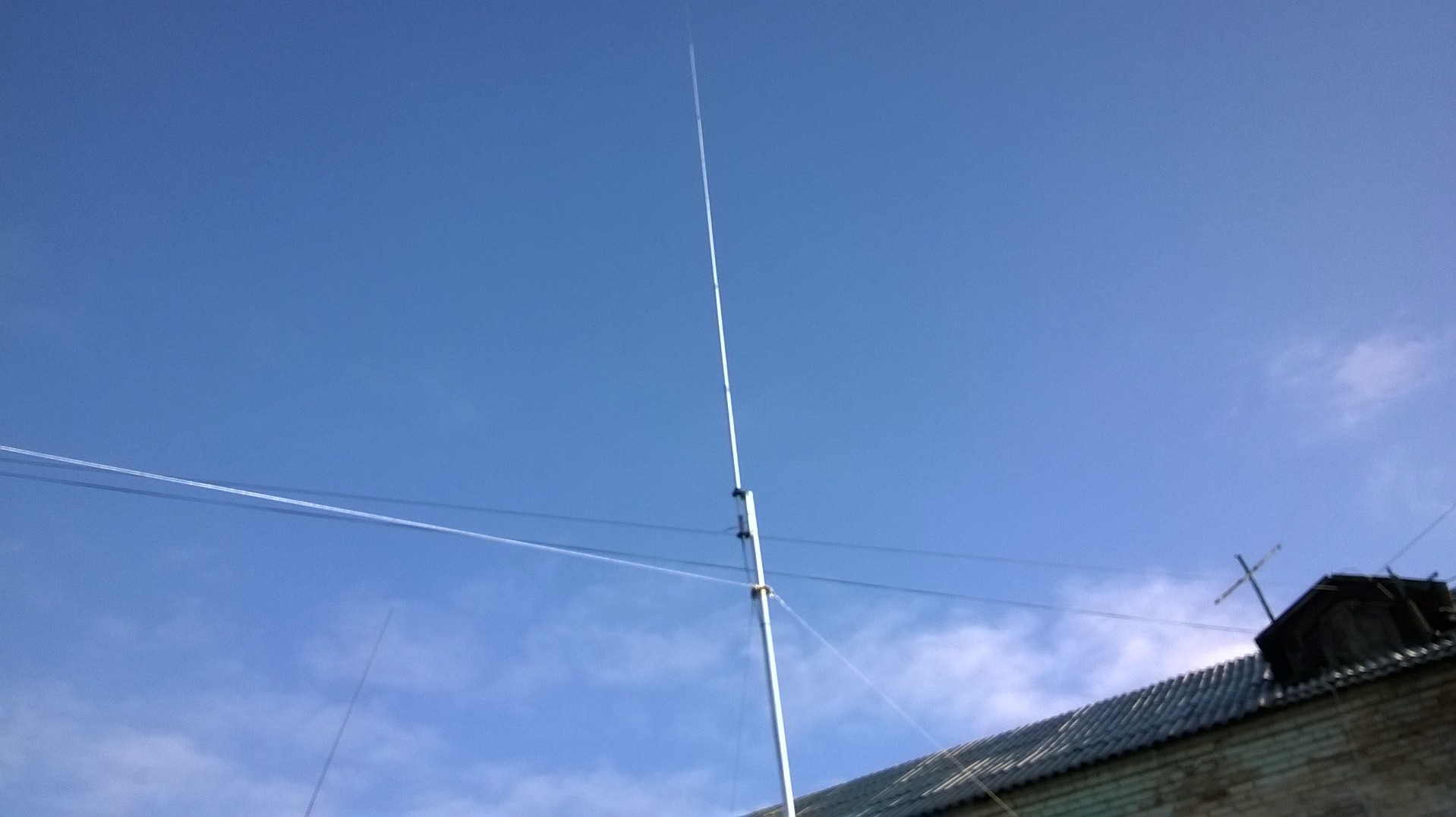 .вылезла ещё одна трабла-не хватает площади двора растянуть по феншую(120градусов)оттяжки.пошел на компромисс угол между двумя оттяжками-170 и крепить пришлось к забору.растянул тросом(3мм) через коуши-нитка доверия не внушает