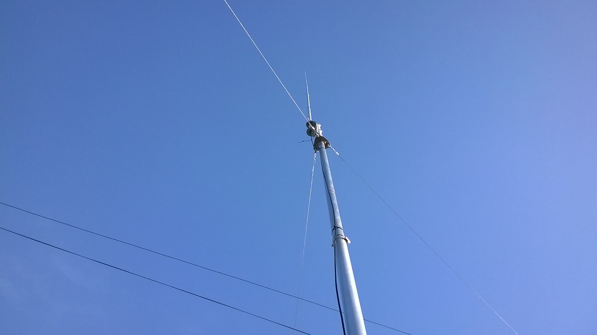 )на всё-про всё максимум 3 часа и темнеет,так что выравнивали мачту уже в потёмках+прое... ошиблись с длиной троса на одной из оттяжек+земля замерзла:забивали 2м арматуру-поснимали куртки