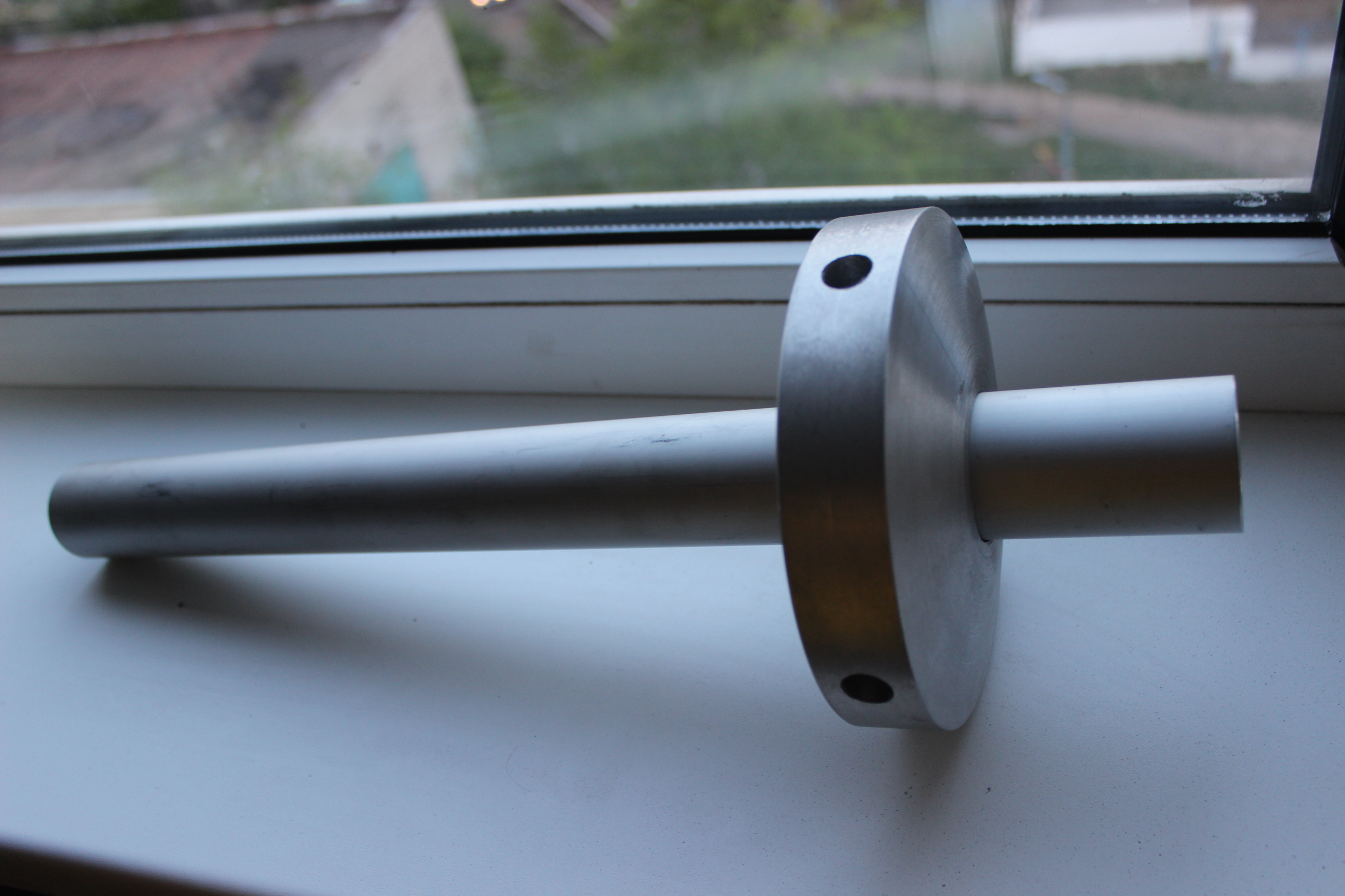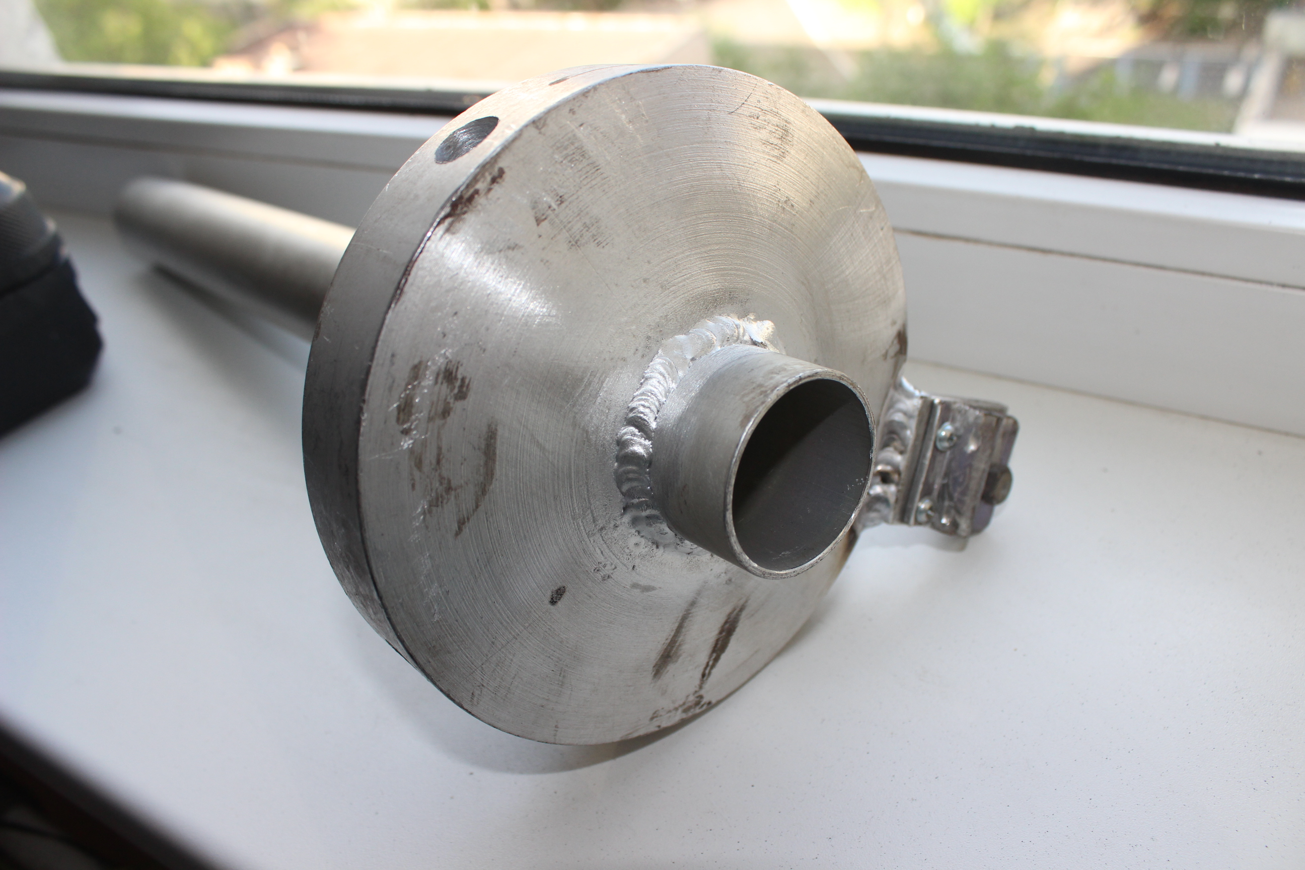 Цельная конструкция - уверен выдержит неслабый ветер. Но все же недолго подумав я просверлил его по оси, дабы скапливающийся в трубах вибратора конденсат имел возможность вытекать вниз.
