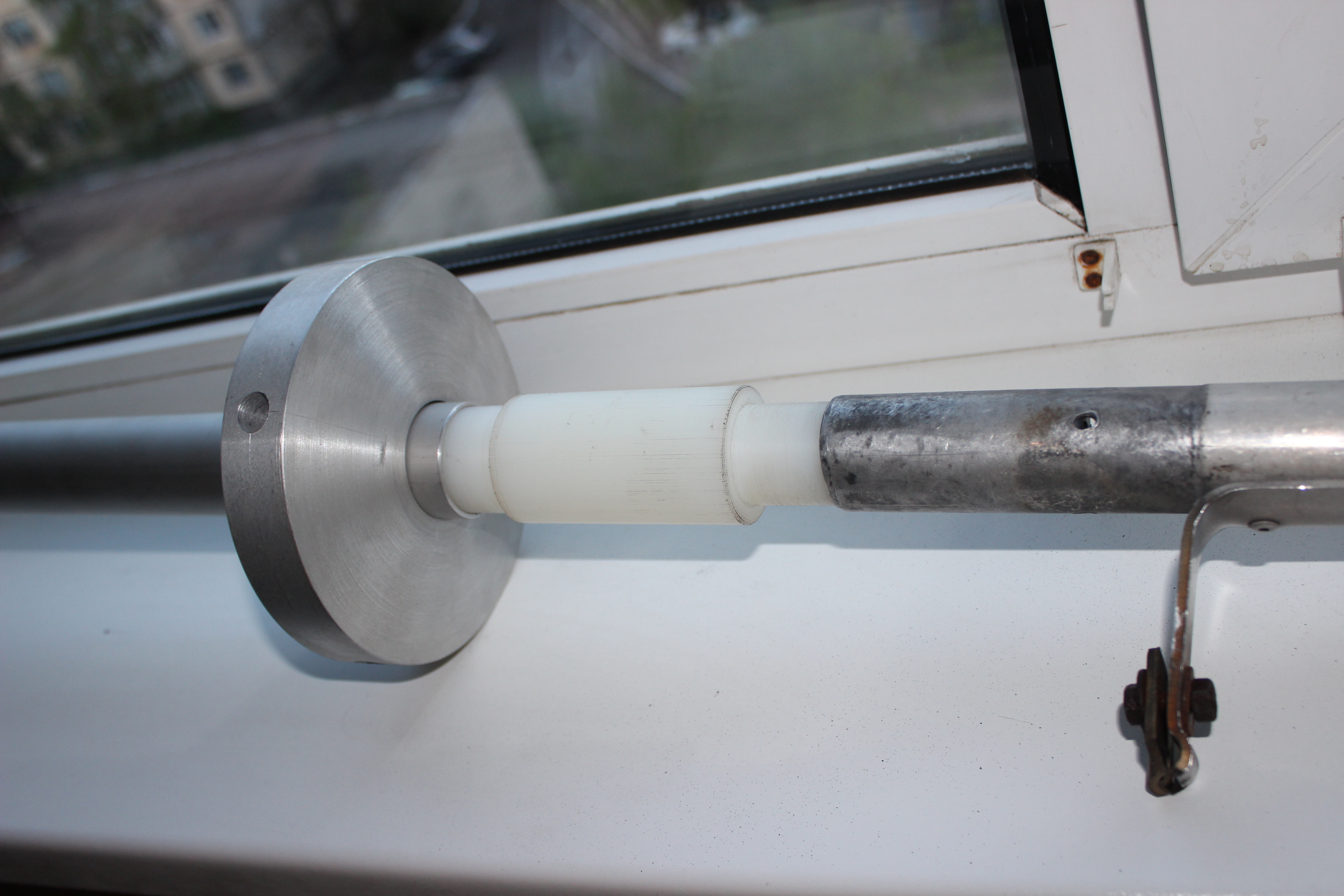 Не долго думая было принято решение переделать все указанные узлы антенны. В закромах друзей обнаружился брусок капролона и дюралевая труба диаметром 40 мм.