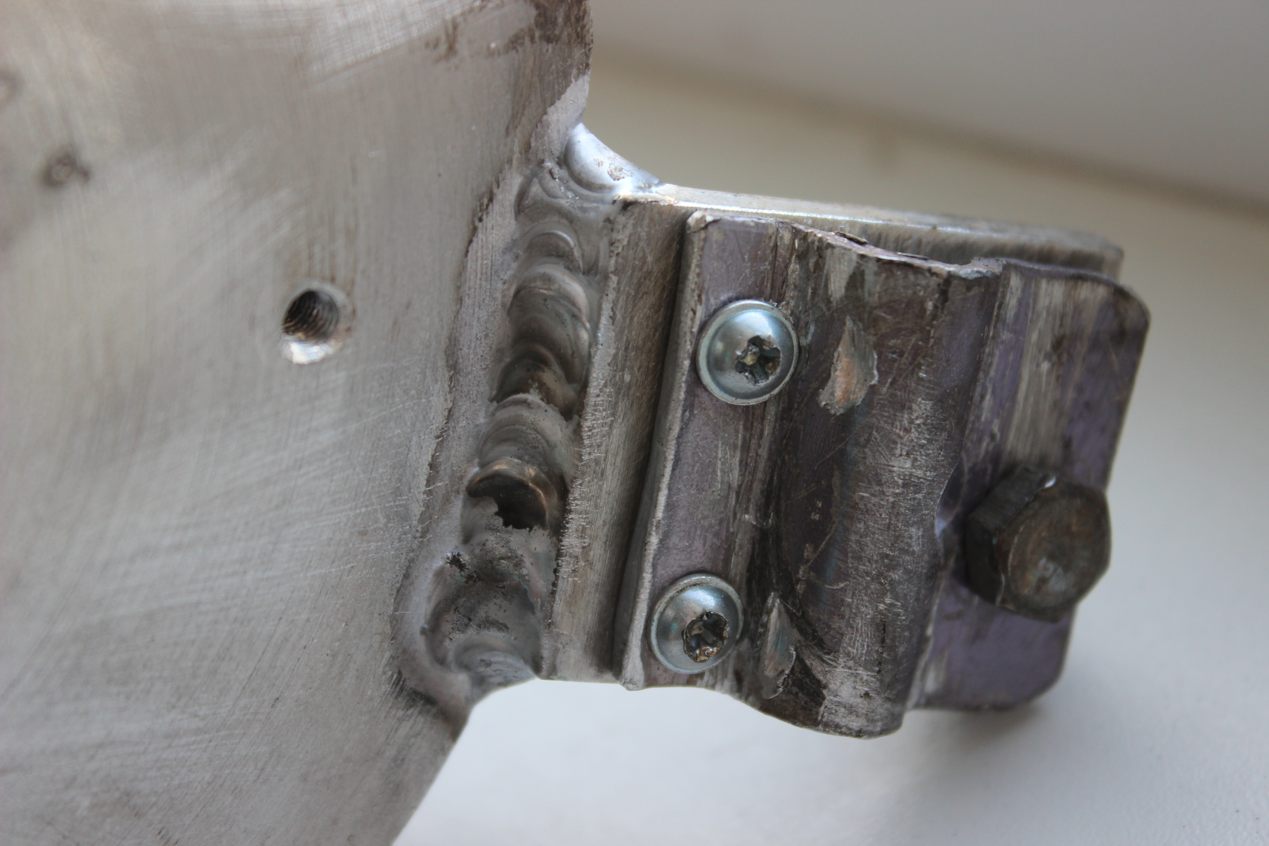 Осталось устранить заводские недочеты в виде приклепанного верхнего кронштейна катушки и собрать всю нижнюю платформу. Поехав к сварщику, ссылку на которого мне подсказал Алекс, были приварены все Конструктивные части обоих держателей катушки и нижняя платформа к трубе.